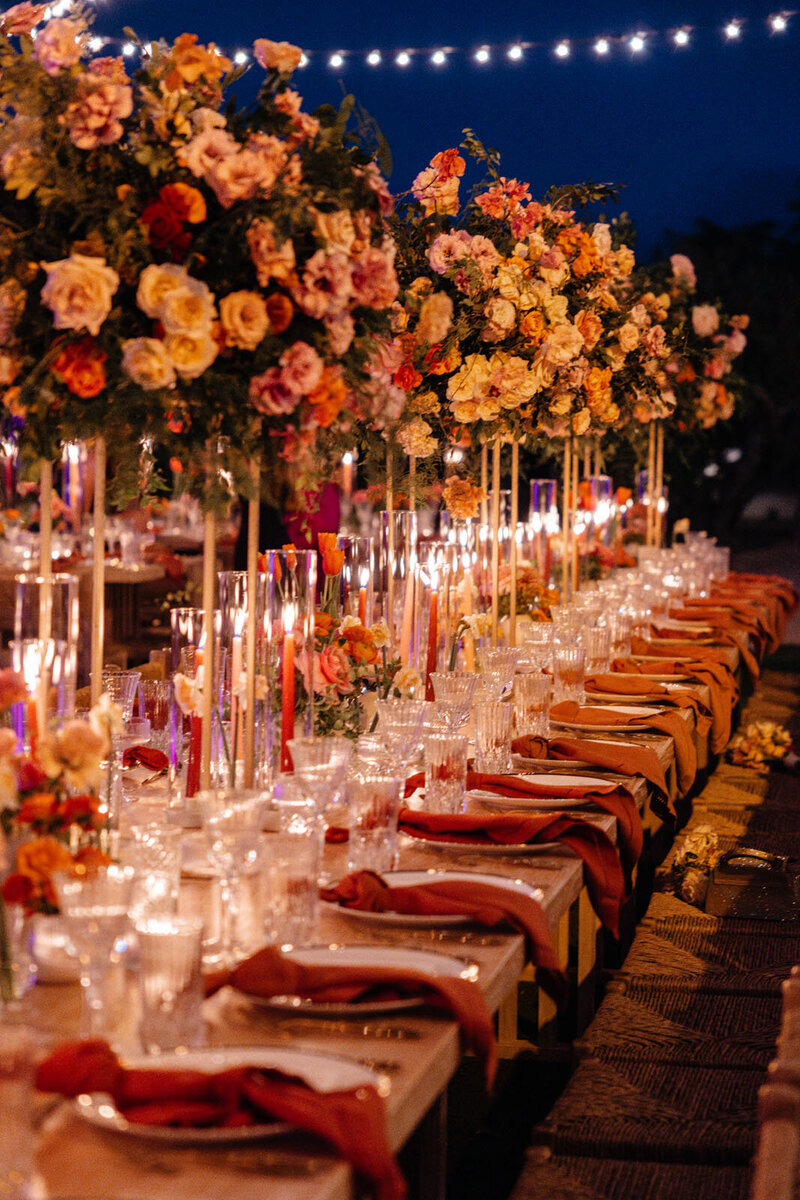 An oceanside celebration that felt like a love letter to Baja’s coastal spirit. Beneath a floral arch at sunset, vows gave way to music, fireworks, and a sea of color. Every detail—bold blooms, local artistry, and radiant light—reflected a modern celebration alive with heart and energy.